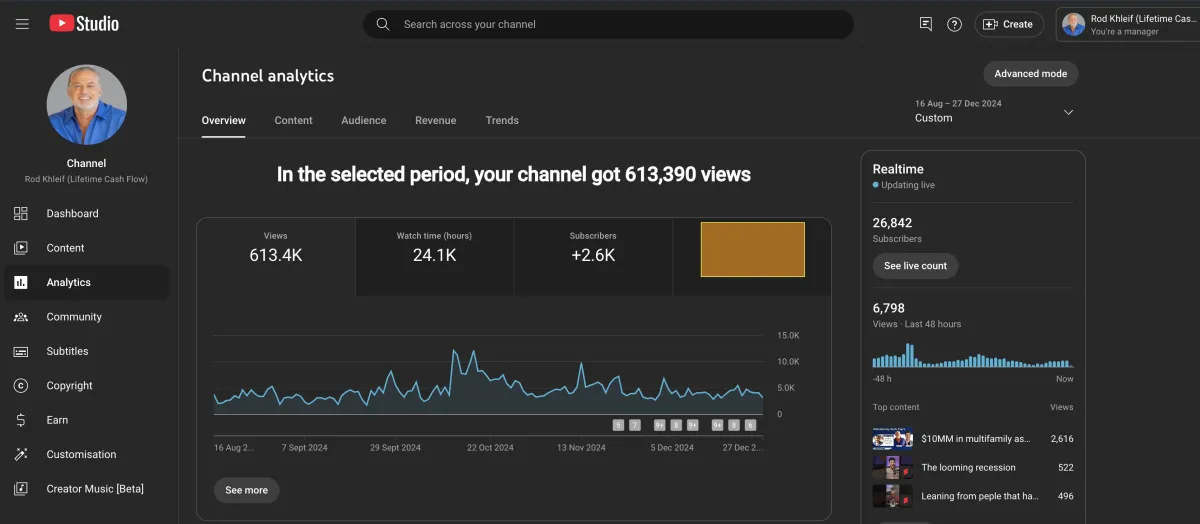 Rod Khleif, Commercial Real Estate Coach - Added 600k+ Views, 3k New Subs